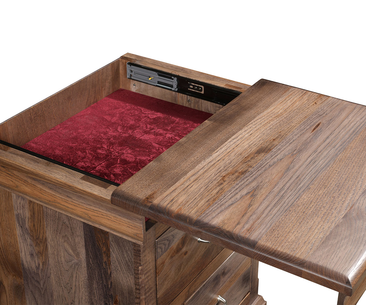 • Sliding top to reveal hidden space