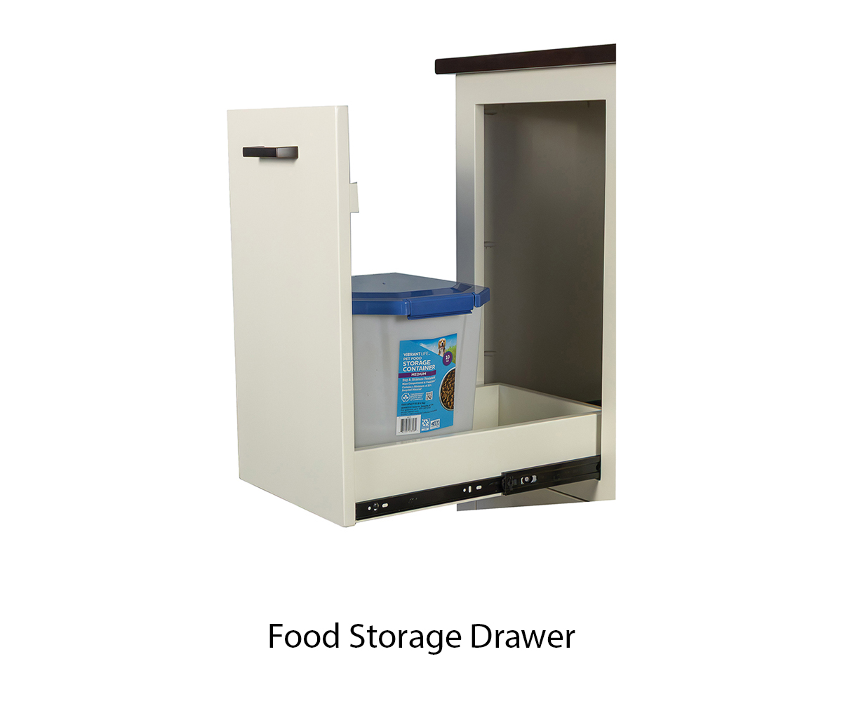 • Drawers for treats and supplies